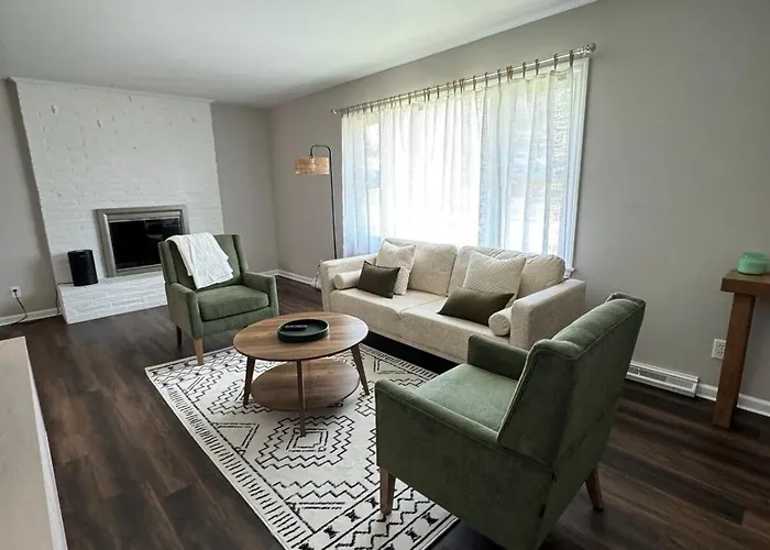 This 2-bedroom villa is within 125 km of Columbia Regional airport and in proximity to such cultural points of interest as the Jim The Wonder Dog Memorial Garden. Also, the holiday home is just 1.3 km from First Christian Church and 3.6 km from the Nicholas Beazley Aviation Museum. Spacious Home, 5 Mins To Missouri Valley College is within 25 minutes' walk of Covenant Presbyterian Church, popular with worshippers as well as tourists.